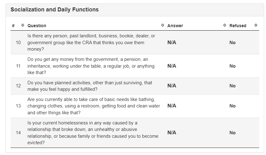 • Activities (Services) (for example, Hoarding Assistance, Rent Subsidy)